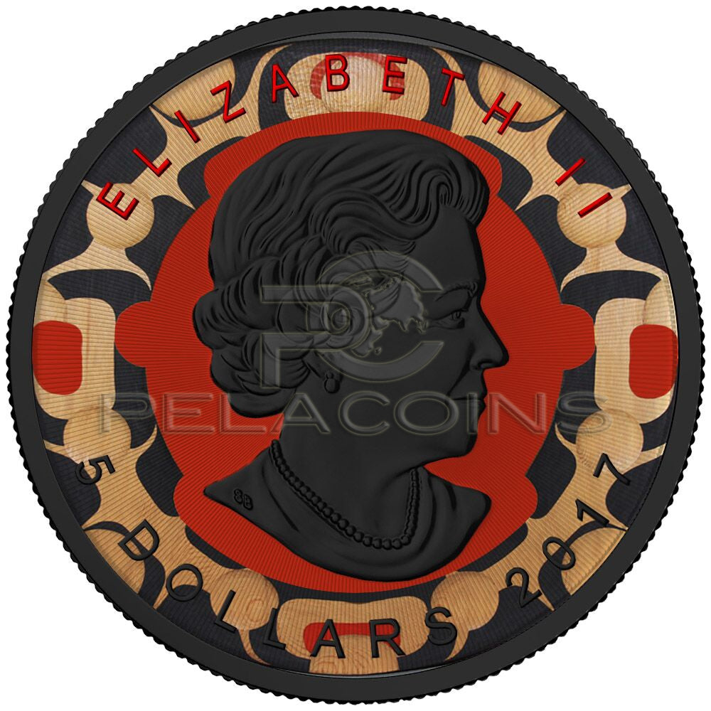 Canada 2017 5$ Maple Leaf - Native Art Moon Ruthenium plated 1oz